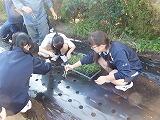 ②土に穴を掘って、苗を植えていきます。
