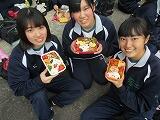 家庭クラブ菜園で収穫したタマネギをつかって、おいしそうなお弁当がたくさんできていました。かわいいキャラ弁もあり、時間をかけて一生懸命作った様子がうかがえました。みんなとても上手でした。さすが、生活文化科の生徒達です。