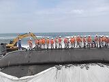 5月25日、環境工学科3年生は総合実習の時間に宮崎海岸の浸食防止対策の現場見学を行いました。全国初の「サンドパック工法」という特殊工法を用いた埋設護岸工事を直に見ることができ、大変よい研修の機会になりました。