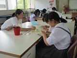 各学科それぞれの内容で体験実習等がありましたが、生活文化科では、在校生による「学科紹介」と「簡単小物(ティッシュケース)づくり」「食物検定1級練習見学」「座談会」を実施しました。