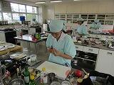 ねじ梅とホワイトソースを入れた、お題にふさわしい献立をたて、90分で一人分を調理します。今回は生活文化科3年生18人が挑みました。