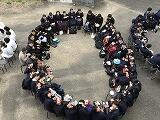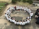 1~3年生まで全生徒、先生がお弁当を持ちより学年ごとに輪になって昼食をとりました。