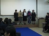 今年は、本校生活文化科の卒業生でもある保育士と介護福祉士の方にお越し頂き、お仕事の内容ややりがいなどをお話していただきました。発表会のために製作された衣装や園児の制作物なども持ってきていただきました。