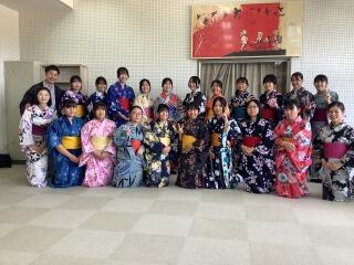 ゆかたの基本的な着付けの技術と、きものの歴史や文化を学びました。