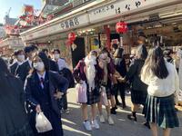 お参りする生徒、おみくじを買う生徒、仲見世でお土産を買う生徒、思い思いに約1時間半の散策を行いました。