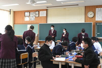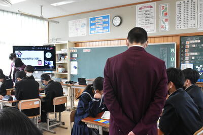 令和5年1月12日(木)に、本庄中学校で、本庄高校1年生による情報モラル講習会を行いました。