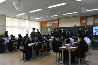 その後は、2つの体験授業を受けていただきました。中学生のみなさんは、本校のボランティア生徒たちの案内のもと、広い校内を移動して希望の体験授業に参加しました。各教科・各系列の職員が、それぞれ教科の特色を生かした授業を行い、中学生のみなさんも楽しんで授業を受けていました。
