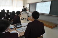 1/25(水)、1年生の「家庭基礎」の授業でアクサ生命保険株式会社宮崎支社の高橋克昌さまよりお金に関する金融経済教育を行われました。