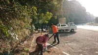 今年度より赤十字奉仕団の方々と一緒に活動することになり、今回の活動が8月・11月に続いて3回目。道路にたくさん落ちている落ち葉の掃き掃除をしたり投げ捨てられたペットボトルや空き缶を拾ったり、、、参加者それぞれ一生懸命に取り組んでいました。