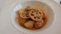 講師の方から食事の前に、ナプキンやナイフ・フォークの正しい使い方や食事を楽しく食べるための周りへの配慮など、たくさんのことを教えていただきました。その後、学生の皆さんが心を込めて作ったりサービスしてくださったおいしいお料理をいただきました。