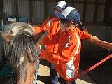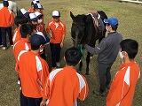 農業の専門教科における動物セラピーの単元で、綾馬事公苑のウマを教材としてウマの特性について学ぶとともに、乗馬などウマとの触れ合いをとおしてウマが動物セラピーの一助となっていることを理解する目的で行っています。県内でもこのような授業が受けられるのは本校だけであり、生徒たちには、ウマの温もりを感じる中で「思いやり」であったり「人の痛みの分かる」人材として成長していってほしいと思います。