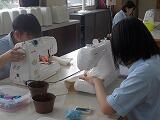 気温は30度越え!汗をかきながら、ミシン縫いと手縫いの基礎縫いに挑戦しました。集中してみんなよく頑張りましたね。授業中と放課後の練習の成果が発揮でしたでしょうか?