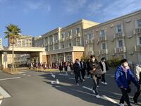 本日は避難訓練で、大きな揺れが発生したことで身を守る行動をし、その後出火のため避難をするという流れで行われました。天候が不安定だったため、体育館へ避難する流れになりましたが、生徒たちは粛々とそれぞれの授業を受けていた教室から素早く動いて、避難場所である体育館に集合しました。