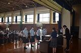 7月19日(月) 夏季休暇前の全校集会、表彰式、そしてALTの先生の離任式が行われました。今までありがとうございました。
