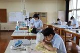 雨ですっきりしない天気が続いていますが、生活文化系列・ライフデザイン系列の生徒は頑張って家庭科技術検定に臨んでいます。6/26(土)が3年次の被服検定2級(洋服・シャツブラウス:3時間)、6/28(月)が2年次の被服検定3級(アウターパンツ:70分)でした。検定は時間との戦いです。しかもずっと気持ちが張り詰めた状態での作業。みんな最後までよく集中して取り組むことができました。