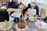 もうすぐクリスマス。生活文化系列のフードデザイン(3年次)の授業でオリジナルのクリスマスケーキを製作。基本のスポンジを焼いた後のデコレーションは各班自由。フルーツたっぷりにしたりチョコレート味にしたり・・・。おいしいケーキができあがりました!家でもチャレンジしてくださいね。