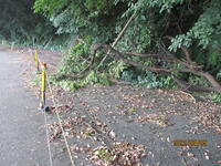 場所は、国富町から綾町に向かう途中にある「保坂地区」。落ち葉がたくさんです。奉仕団の方々は毎月1回