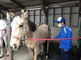 綾の馬事公苑において、本校フードビジネス系列の2年生が、ホースセラピーの授業を行いました。ホースセラピーとは、動物セラピーの単元で馬を教材にして、馬の特性について学ぶとともに、乗馬体験を通して、馬がセラピーの一助となっていることを学習します。
