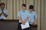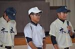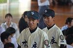 期末考査最終日。テスト後は体育館で表彰式・上位大会、野球部の推戴式が行われました。
