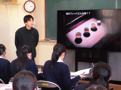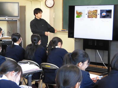 基礎講座では、本校職員と高校1・2年生がリトルティーチャー(講師)となり、中学生に教えていました。和気あいあいとした雰囲気でした。