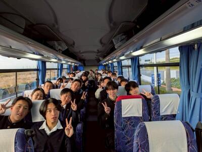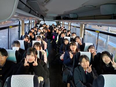 バスに乗り込み全員で元気に出発です!