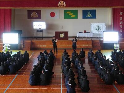 また、日南市長から本校生徒へ激励のお言葉もいただきました。