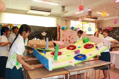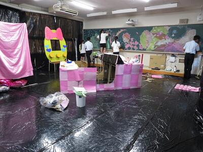 南郷ハートフルセンターではリハーサル、日南高校内ではクラス展示の準備が大詰めを迎えています。