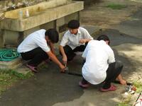 連日、排水溝の詰まりを取り除いてくれている三人衆。