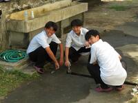 理科講座では、高校1・2年生がリトルティーチャー(講師)となり、中学生に教えていました。 一緒に実験も行いました。