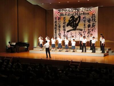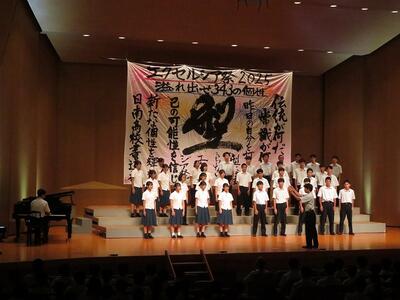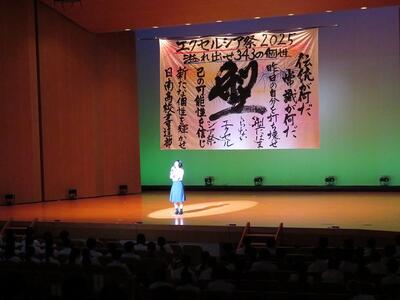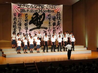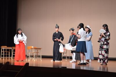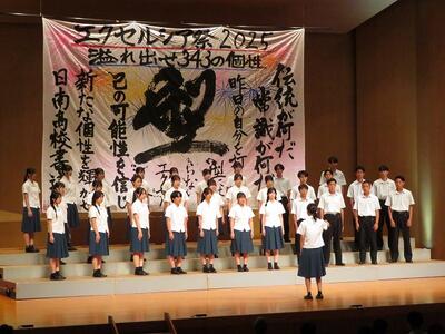 書道部のパフォーマンに始まり、個人発表や各部の発表、1・2年生による合唱コンクール、午後からは3年生の演劇などが行われました。