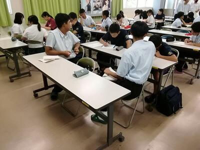 国語講座では、本校職員が高校入試対策の講座を行いました。中学生のみなさん、真剣に取り組んでいます。