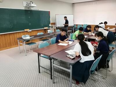 社会講座では、本校職員が高校入試対策の講座を行いました。中学生のみなさん、一生懸命に取り組んでいます。