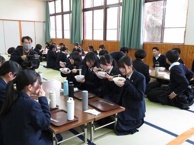 日南高校の伝統の一つ、合勝うどんが開催されました。