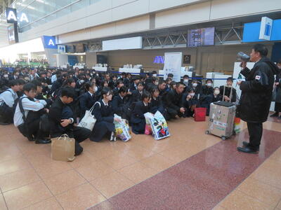 先生の挨拶の後、代表の生徒が英語で歓迎のことばを述べました。