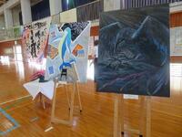 体育館には、書道部や美術部などによる作品や家庭クラブによる研究発表が展示されました。