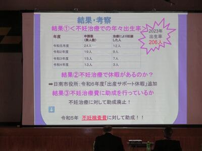 日南高校では、日南地区の地域的課題の解決に向けて調査・研究する学習を「未来戦略課」と名付けています。