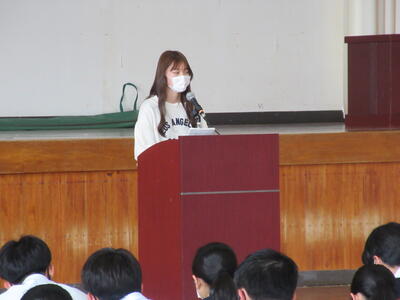 3月17日金曜日の午後、体育館にて進路講演会がありました。