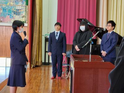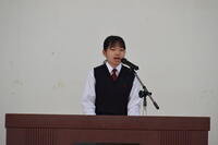 最初に新任式があり、生徒代表が歓迎の挨拶をしました。
