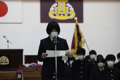 新入生代表は127名で3年間の学校生活を過ごしていく中で、校是の