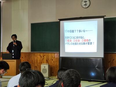 4月18日火曜日、1年生対象のSDGs講演会が行われました。