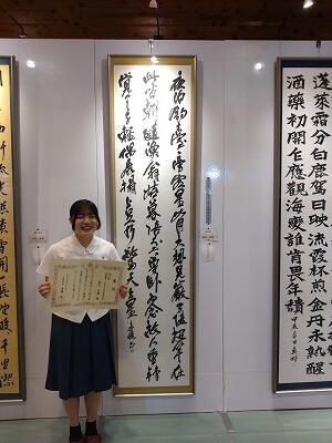 書道部より出品の3年生の請川結香さんが特選(日南市議会議長賞)に、新名未優さんが奨励賞(日南市文化芸術会長賞)に入賞し表彰されました。