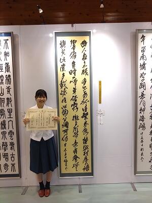 書道部より出品の3年生の請川結香さんが特選(日南市議会議長賞)に、新名未優さんが奨励賞(日南市文化芸術会長賞)に入賞し表彰されました。
