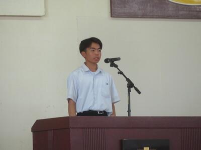 新生徒会の紹介と、新生徒会長 内田幹太さんの挨拶です。