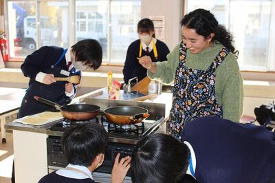 ジェシカ先生とメキシカンフードを作るぞ!と生徒が集まっていました。