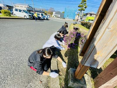 飫肥駅と周辺の美化作業に、5つの部活動を中心に81名の生徒・職員が参加しました。