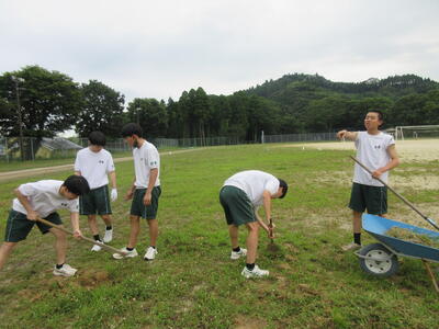 7月7日(木)は、1組の生徒でグラウンドの草抜きに取り組みました。