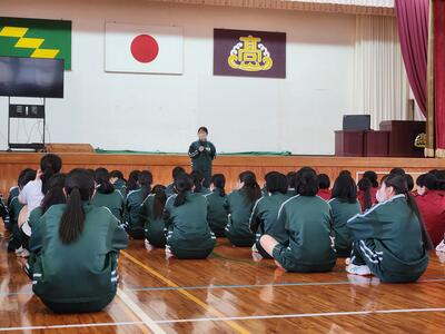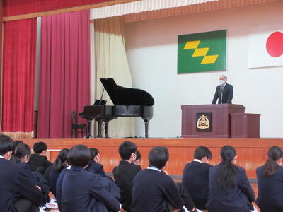 3月17日金曜日の午後、体育館にて進路講演会がありました。