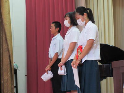 第4回星の俳句コンテスト「佳作」の生徒二人、第15回統一全日本空手道選手権大会「準優勝」の生徒が表彰されました。