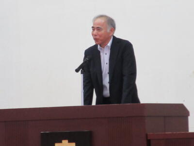 先生の挨拶の後、代表の生徒が英語で歓迎のことばを述べました。