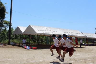 1年生団技は「長縄跳び」 声をかけあって飛びます!